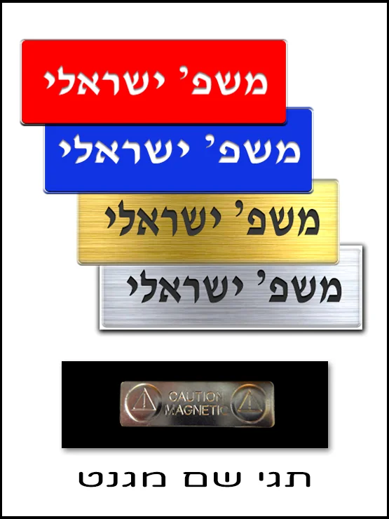 תג שם מגנט כסוף, תג שם מגנט זהוב, תג שם מגנט כחול, תג שם מגנט אדום